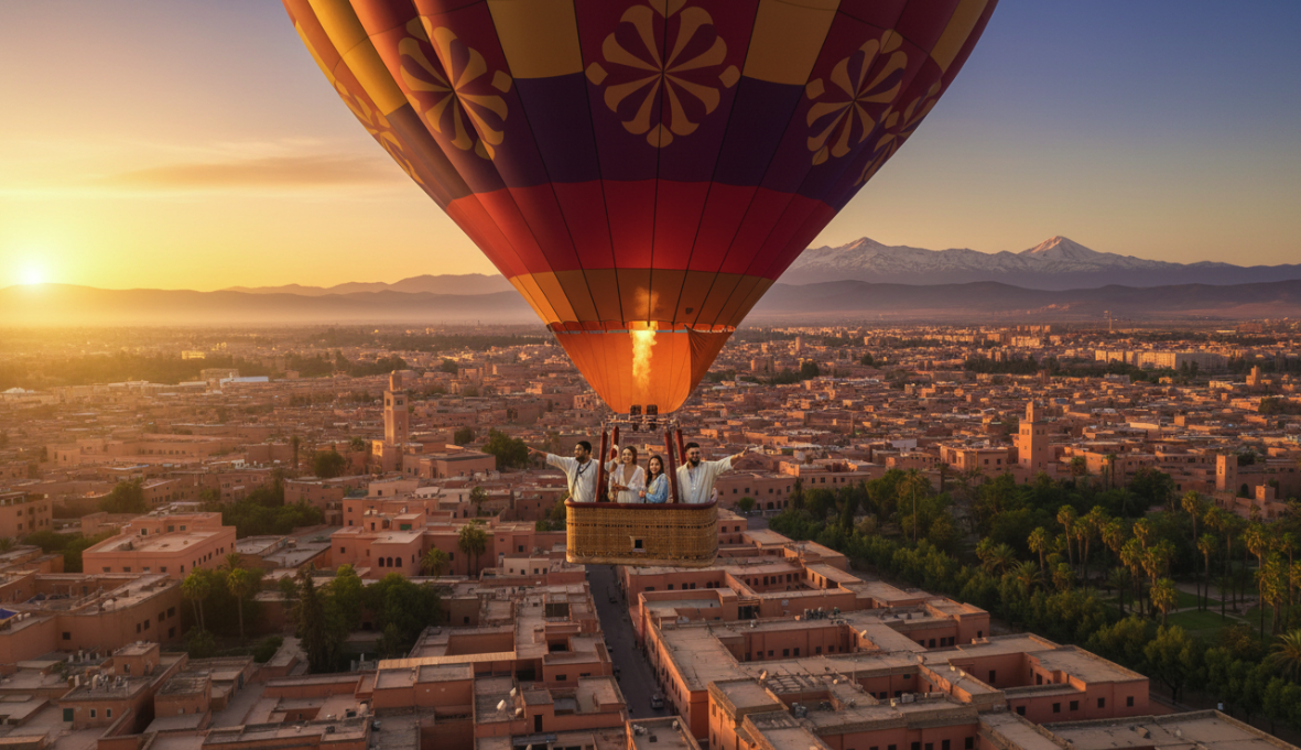 60-minute sunrise hot air balloon flight – Panoramic views of Palmeraie & Atlas Mountains